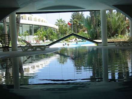 Blick vom Hallenbad in den Pool