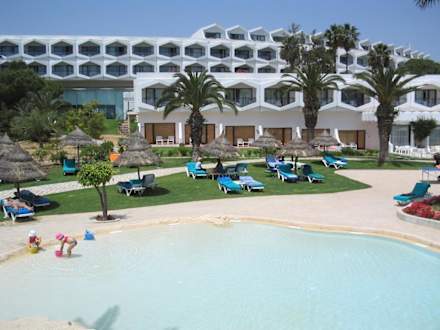Blick über den Pool zum Hotel