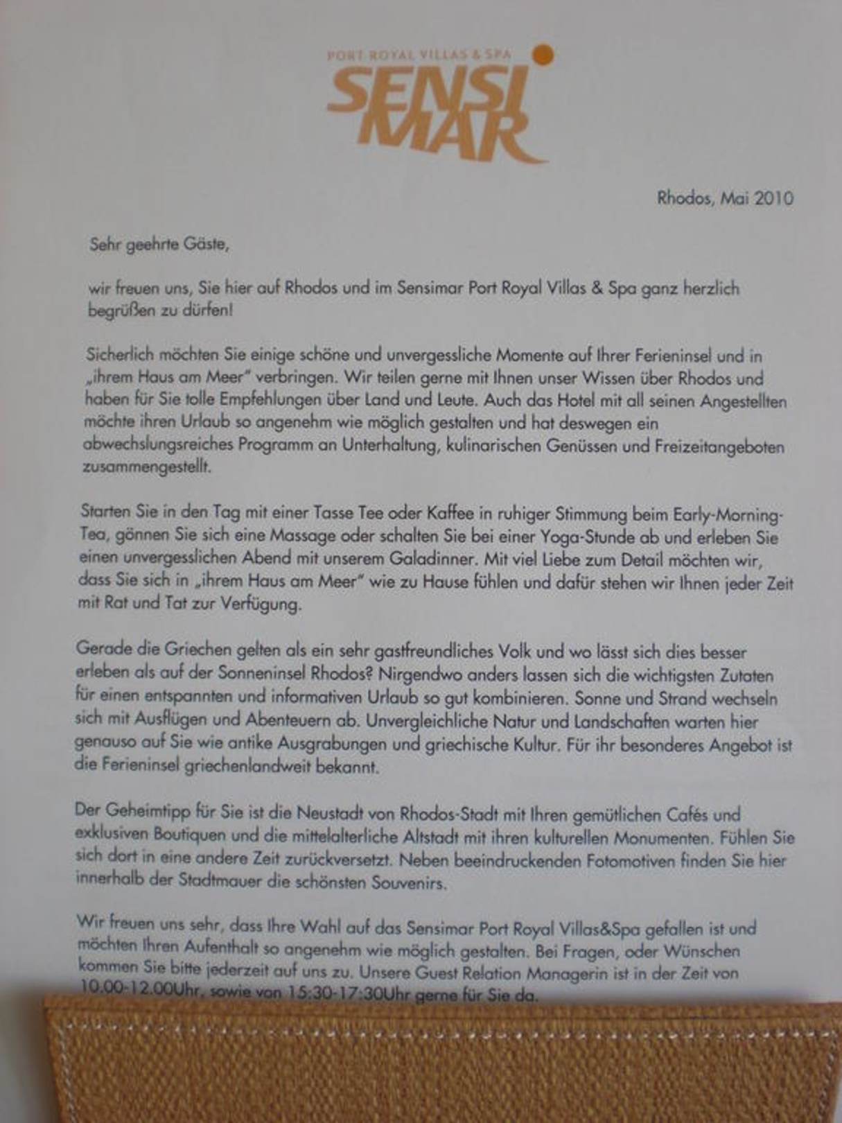 Willkommensgruß vom Hoteldirektor