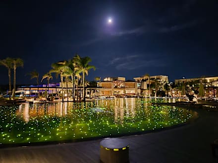 Der Pool mit Vollmond bei Ankunft. Einfach fantastisch. So kann Urlaub beginnen.