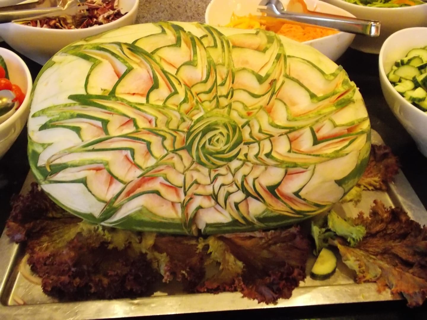 Geschnitzte Melone am Salatbuffet