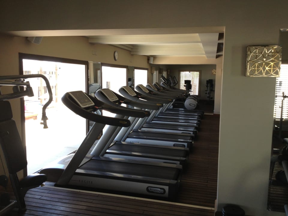 Fitnessraum mit Blick auf die Pools