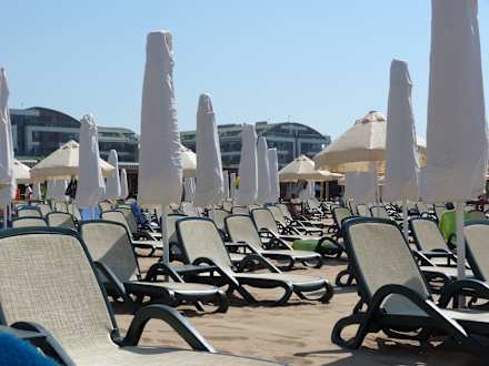 Sonnenschirme und Hotel im Hintergrund Sentido Trendy Verbena Beach