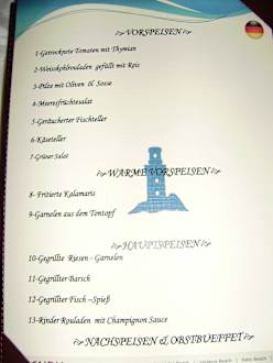 Speisekarte Fischrestaurant