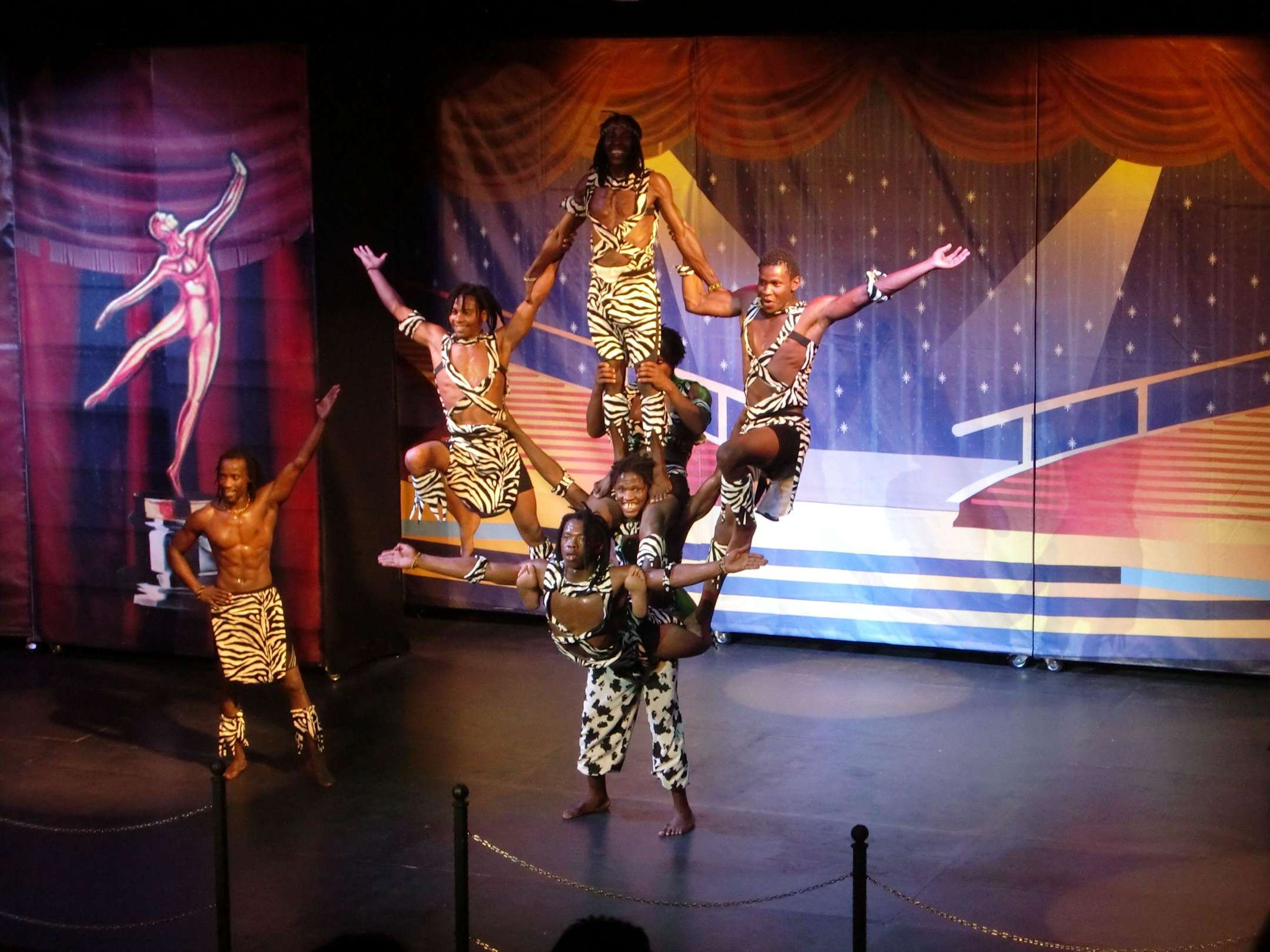 Afrikanische Akrobatik mit Urlauberkind