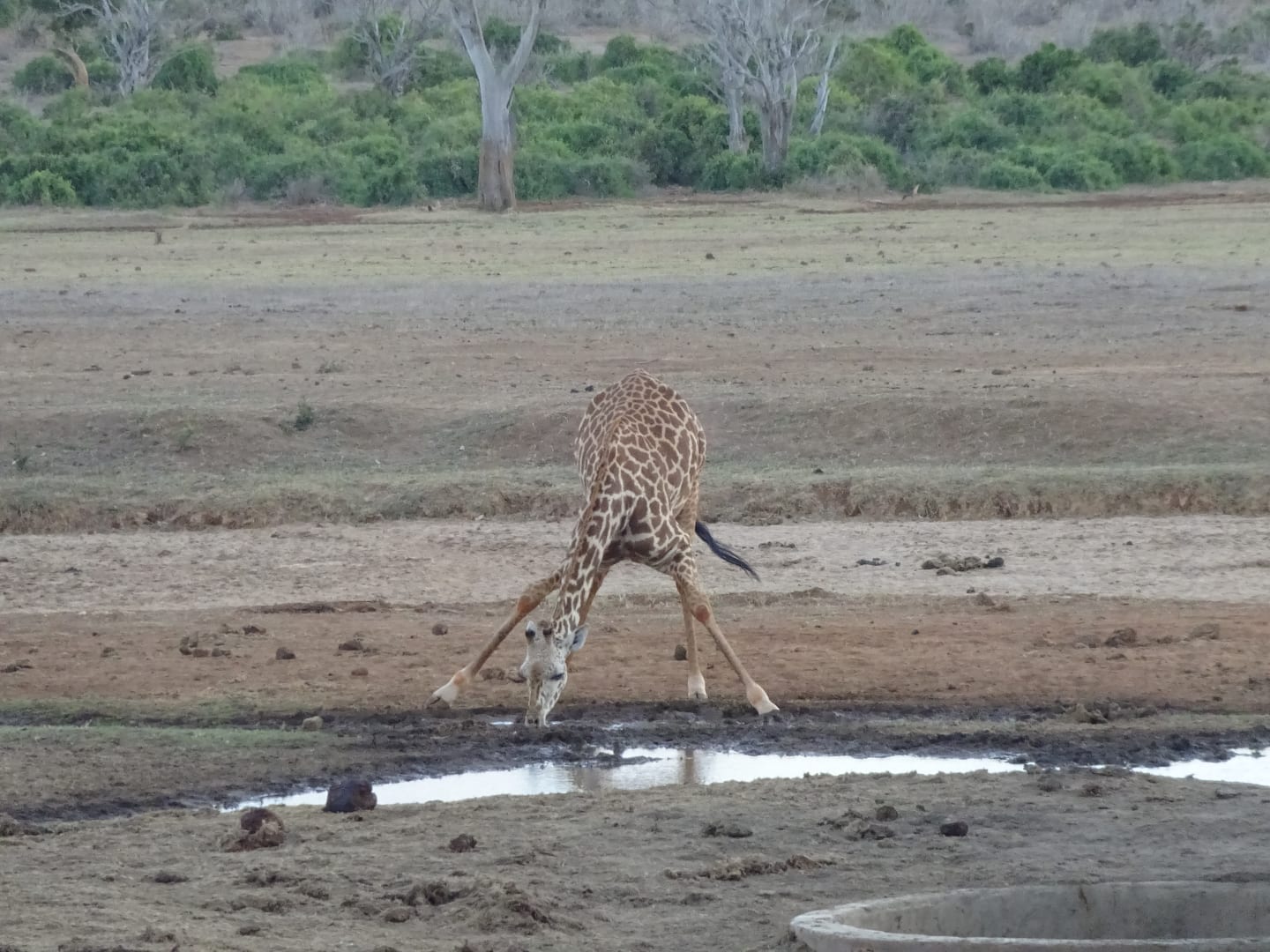 Giraffe bem Trinken am Wasserloch