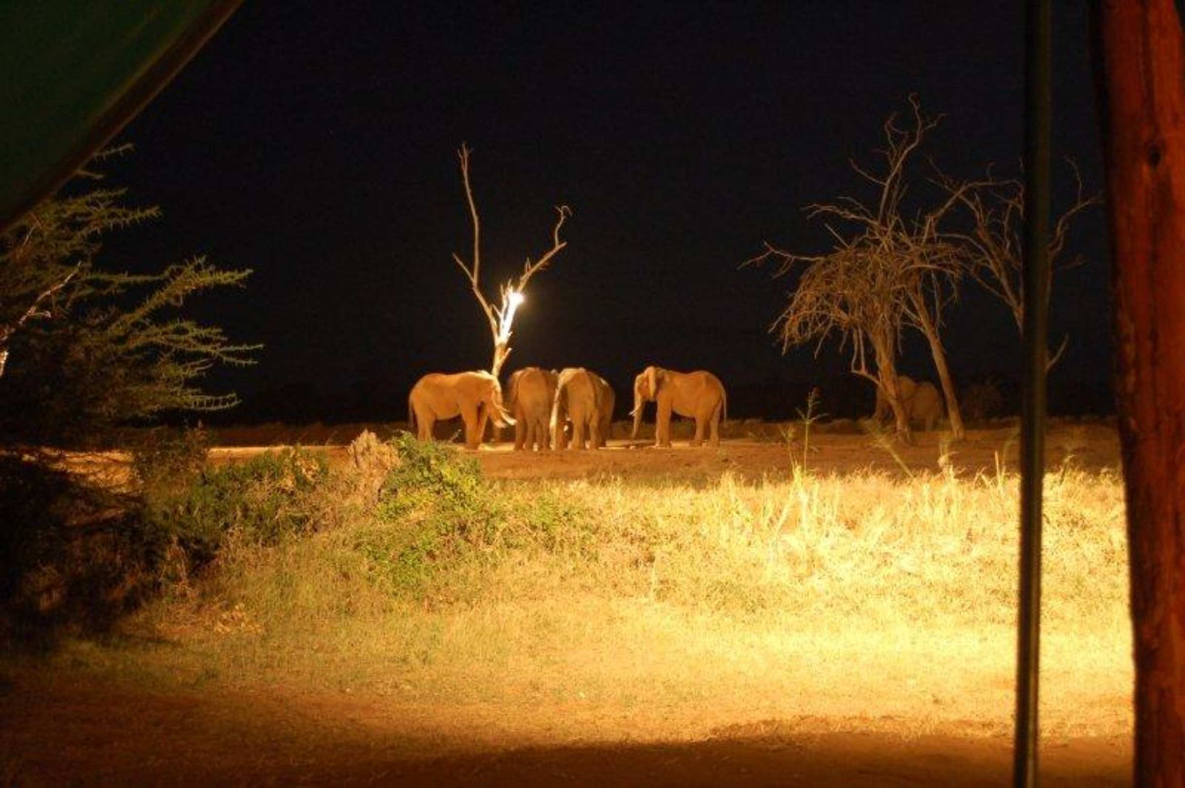 Blick abends vom Zelt Nr. 5 auf die Wasserstelle