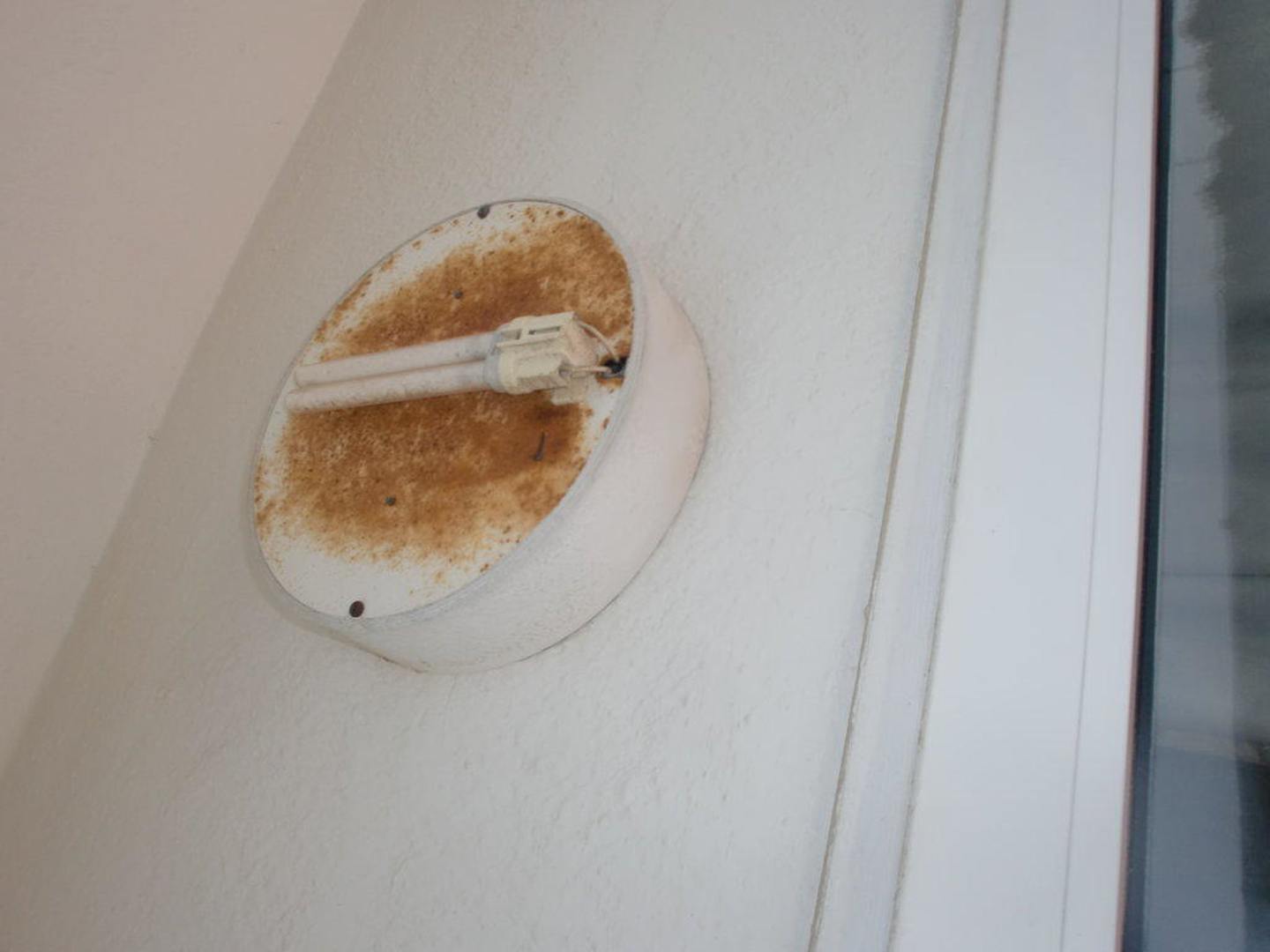 Verrostete Lampe auf dem Balkon