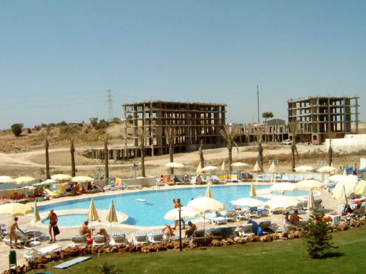 Ein typischer Blick auf die Poollandschaft. In unmittelbarer Nähe gibt es eine riesige Baustelle mit viel Lärm.