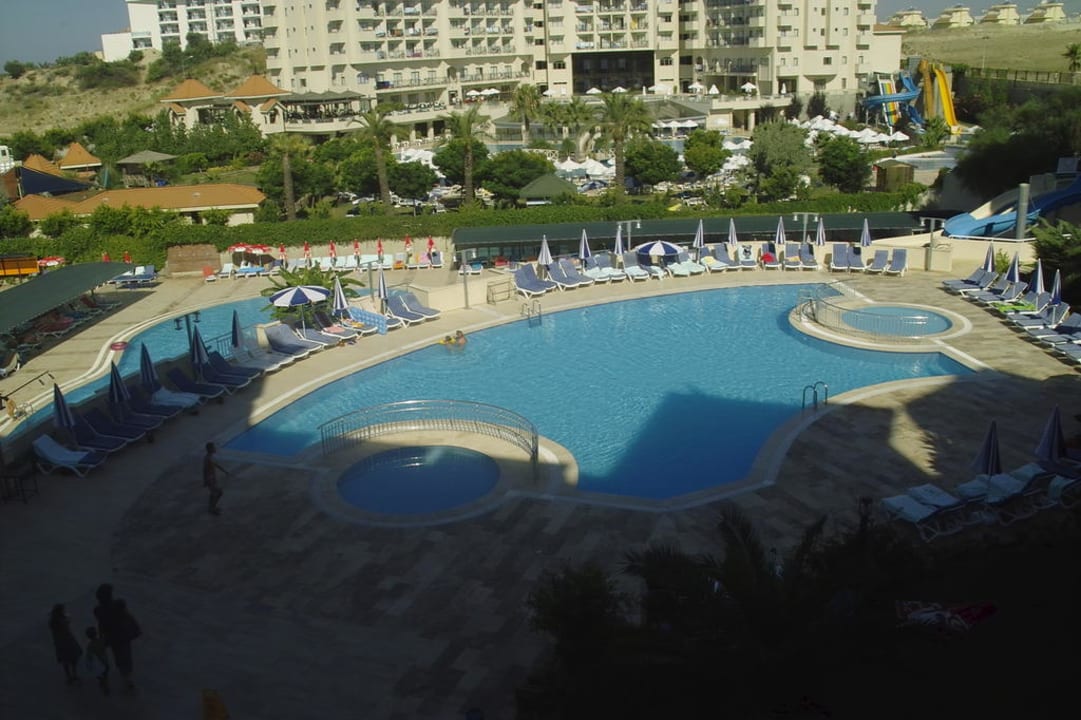 Blick vom Zimmer auf oberen Pool