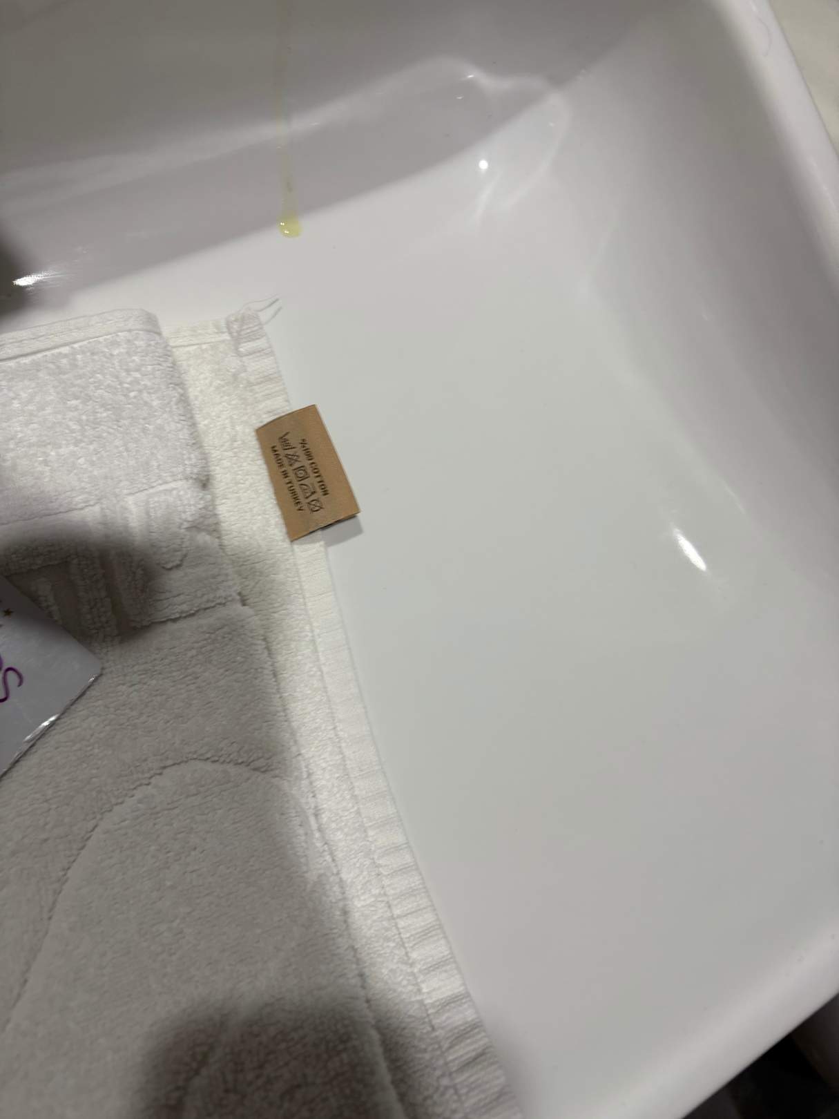 Neues Handtuch ins dreckige Waschbecken gelegt