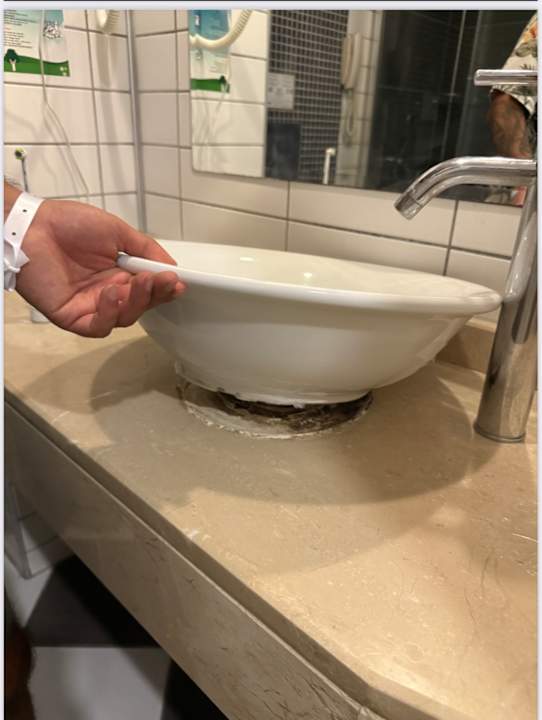 ZimmerNeben den katastrophalen Duschen hatten wir auch eine lockere Waschbeckenamatur, welche ebenfalls unterhalb voller Schimmel war
