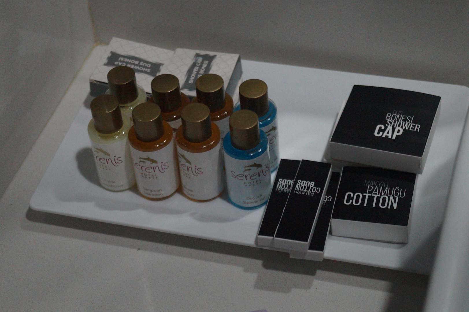 Shampoo, Seife, QTips Bademütze etc