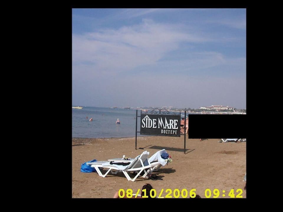 Strand ImpressionenDer Strandabschnitt von Side Mare Klasik, Also Side Mare Aqua und Side Mare Family fahren mit dem Treker zum Strandabschnitt, Und das ist der geile suuuppper Küstenabchnitt von Kumköy . Die Strandbar war Mega Klasse . Super Essen und Trinken und unglaublich saubere Toiletten. Halt alles in deutscher Hand. Ca. 50 Meter weiter links (beim Bananboot) liegen 100% keine Felsbrocken im Wasser und man kann meterweit ins Wasser rennen, laufen, ideal für Kinder und Schwimmfaule...