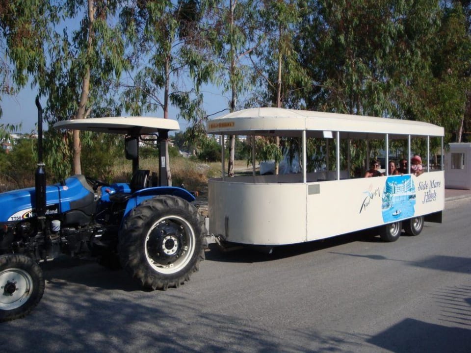 ShuttlebusDies ist der lustige Strand-Shuttle. Ein Traktor mit einem Anhänger dran, der innen mit Sitzbänken ausgestattet ist. Die Fahrt dauert zwar nur kurz, ist aber immer wieder ein Erlebnis.. wir fanden es jedenfalls toll...