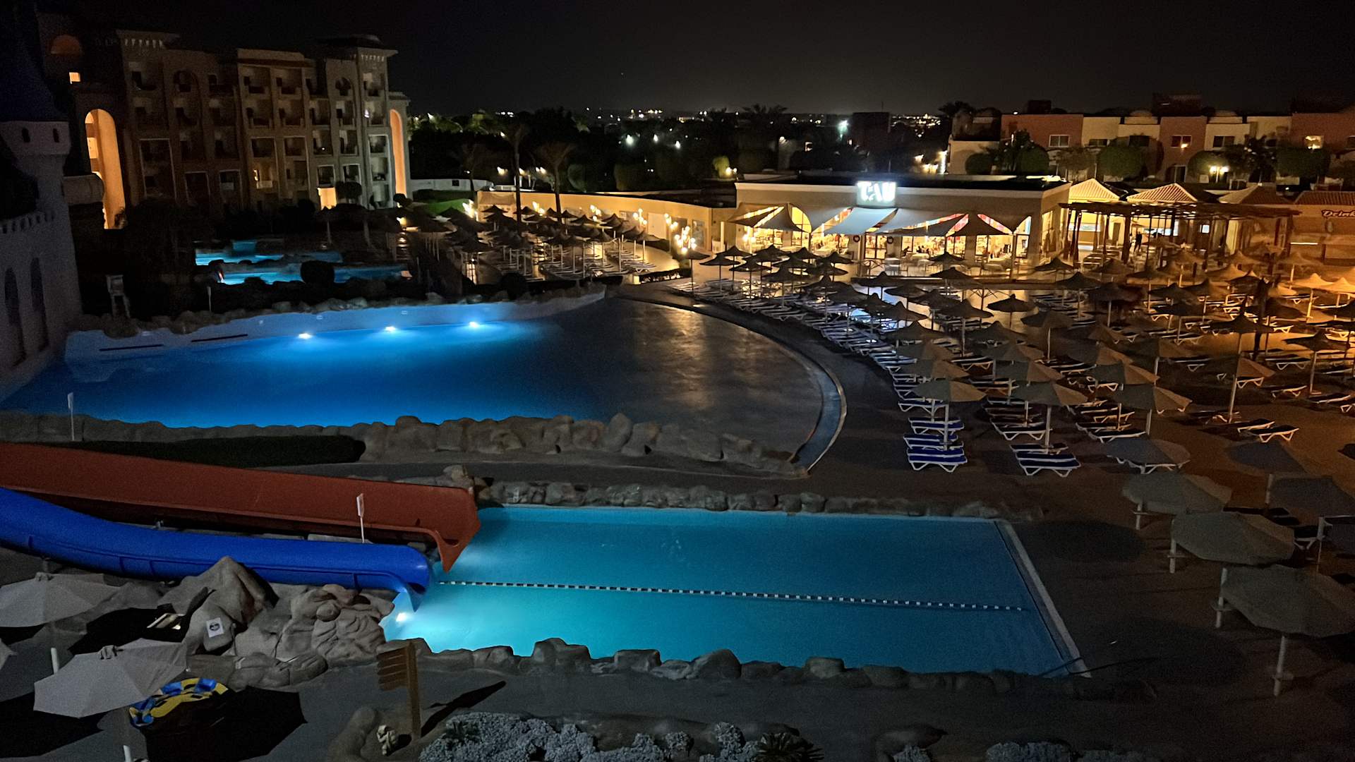 PoolWellenbad und Rutschenpark bei Nacht