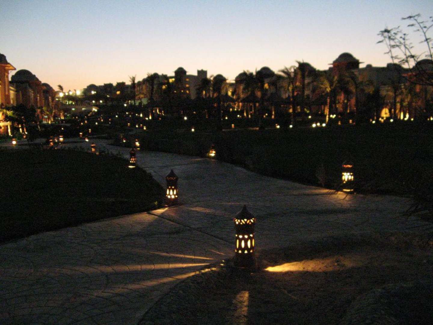 Widok kompleksu hotelowego wieczorem