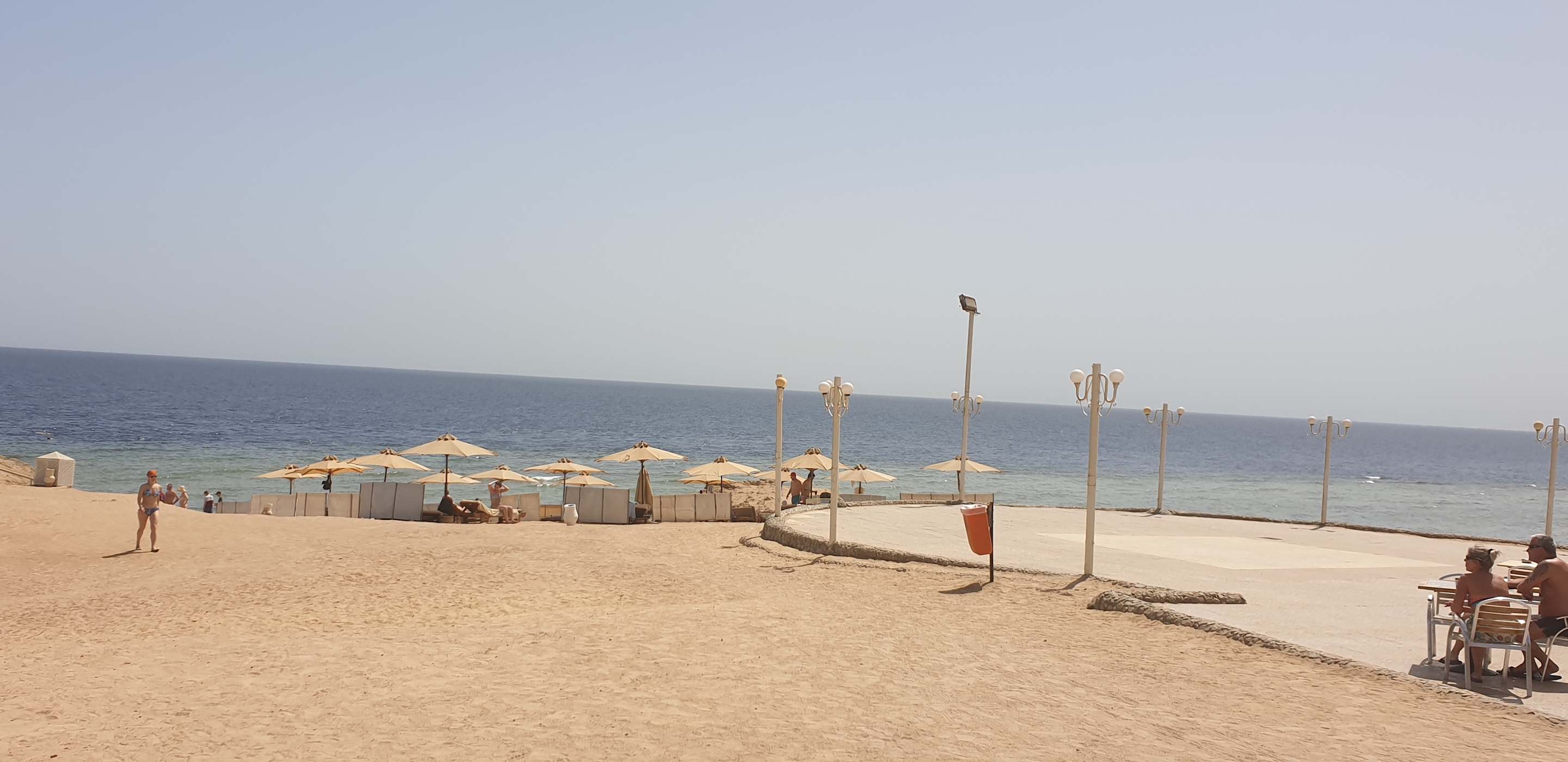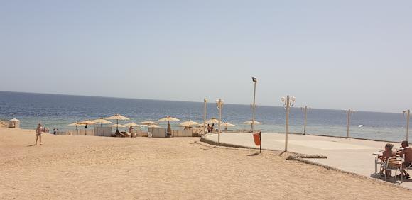 StrandEin Blick von der Strandbar, wo man auch mal zwischendurch einen Snack zu sich nehmen kann, auf das Rote Meer....