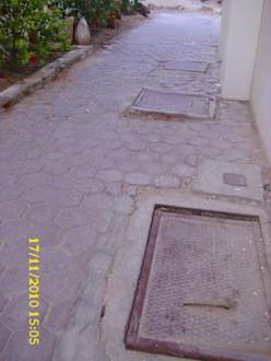 Weg zwischen den Gebäuden zu den Zimmern