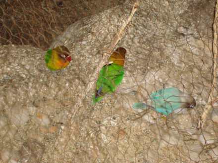 Три ярких попугайчиков