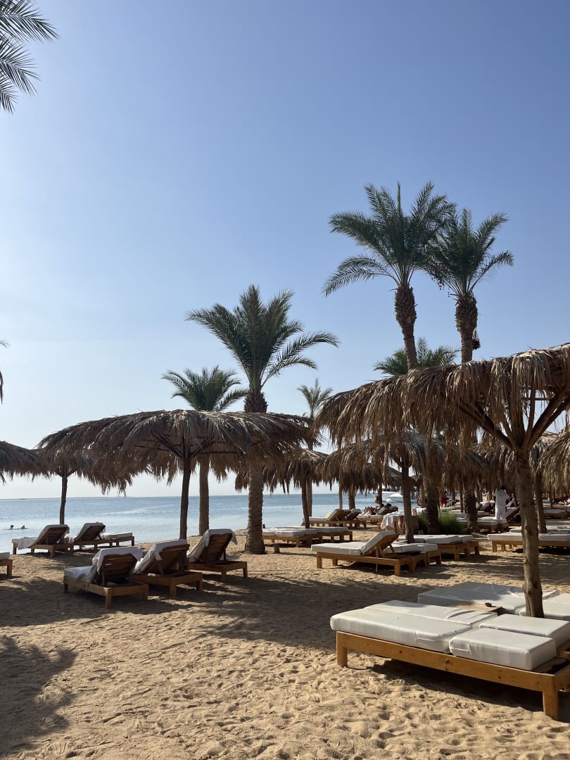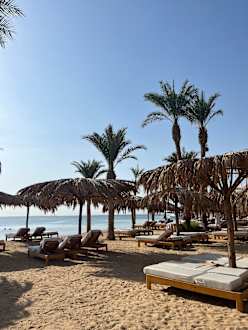 Strand mit bequemen Liegen