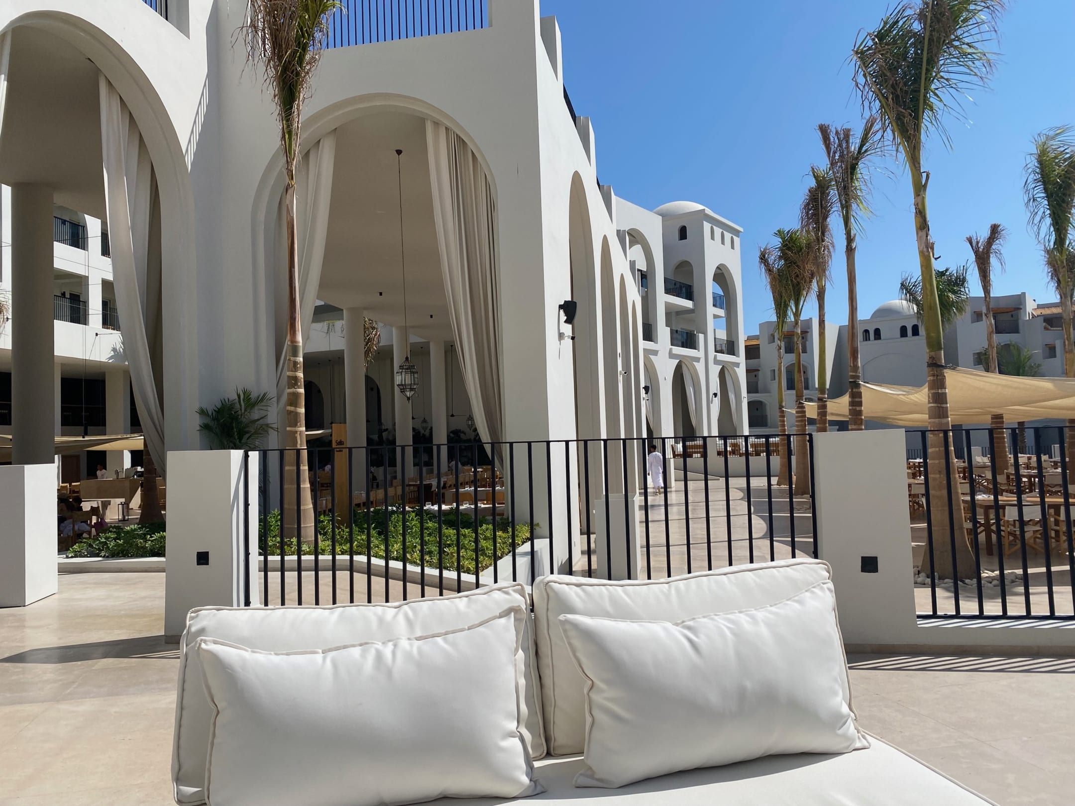 An der Hotel Bar Terrasse mit Blick auf das Hauptrestaurant