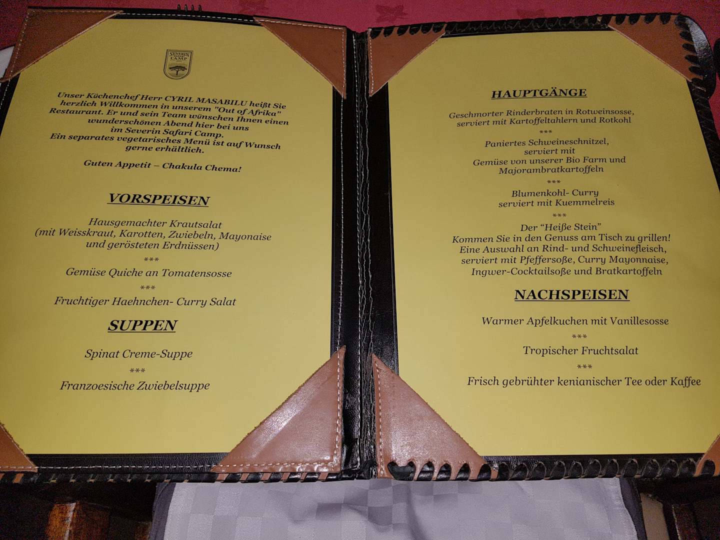 Blick in die Speisekarte