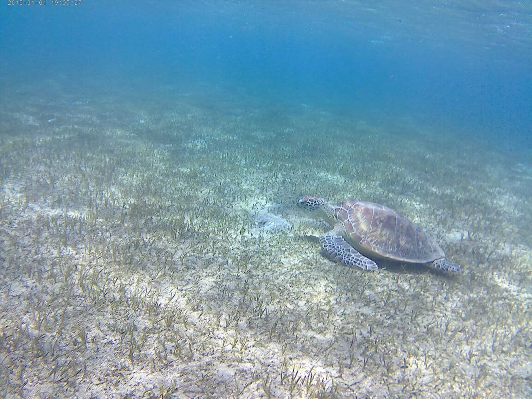Sahen jeden Tag Schildkröten links im Seegras