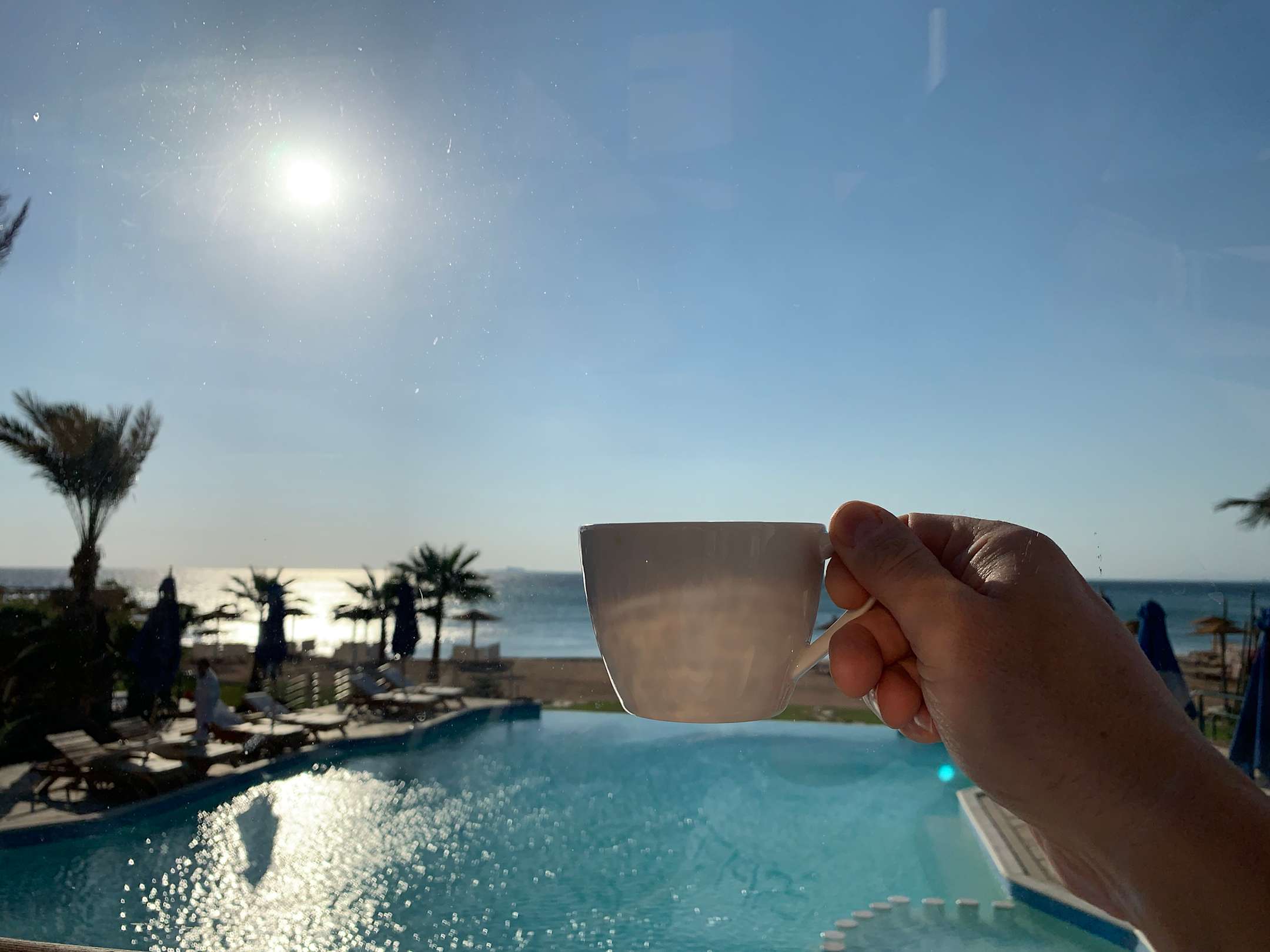 Guten Morgen Kaffee am Pool