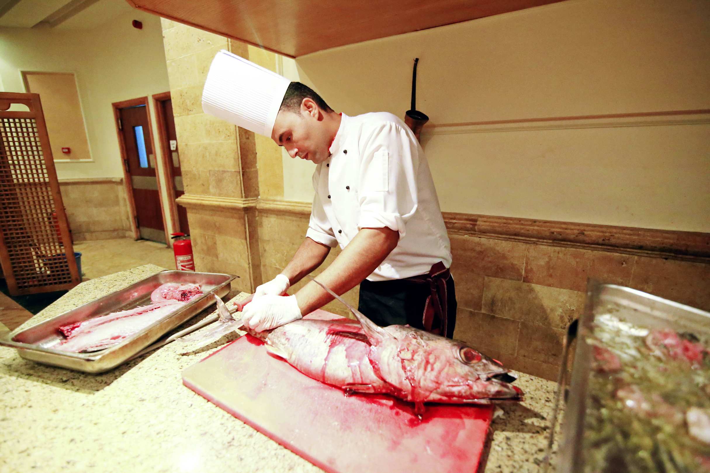 Повар готовит тунца