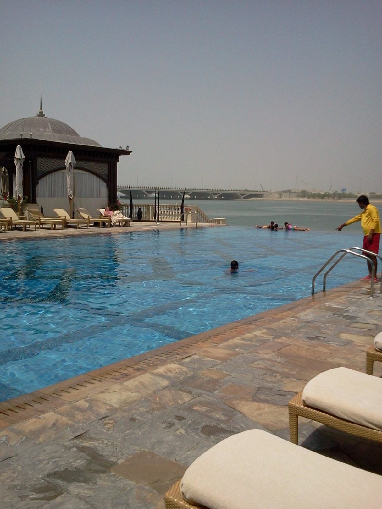 Der Pool mit dem klimatisierten Zelt im Hintergrund