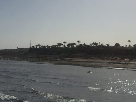 Blick vom Steg (m.eigenem Hausriff) zum Strandabschnittes des Hotels