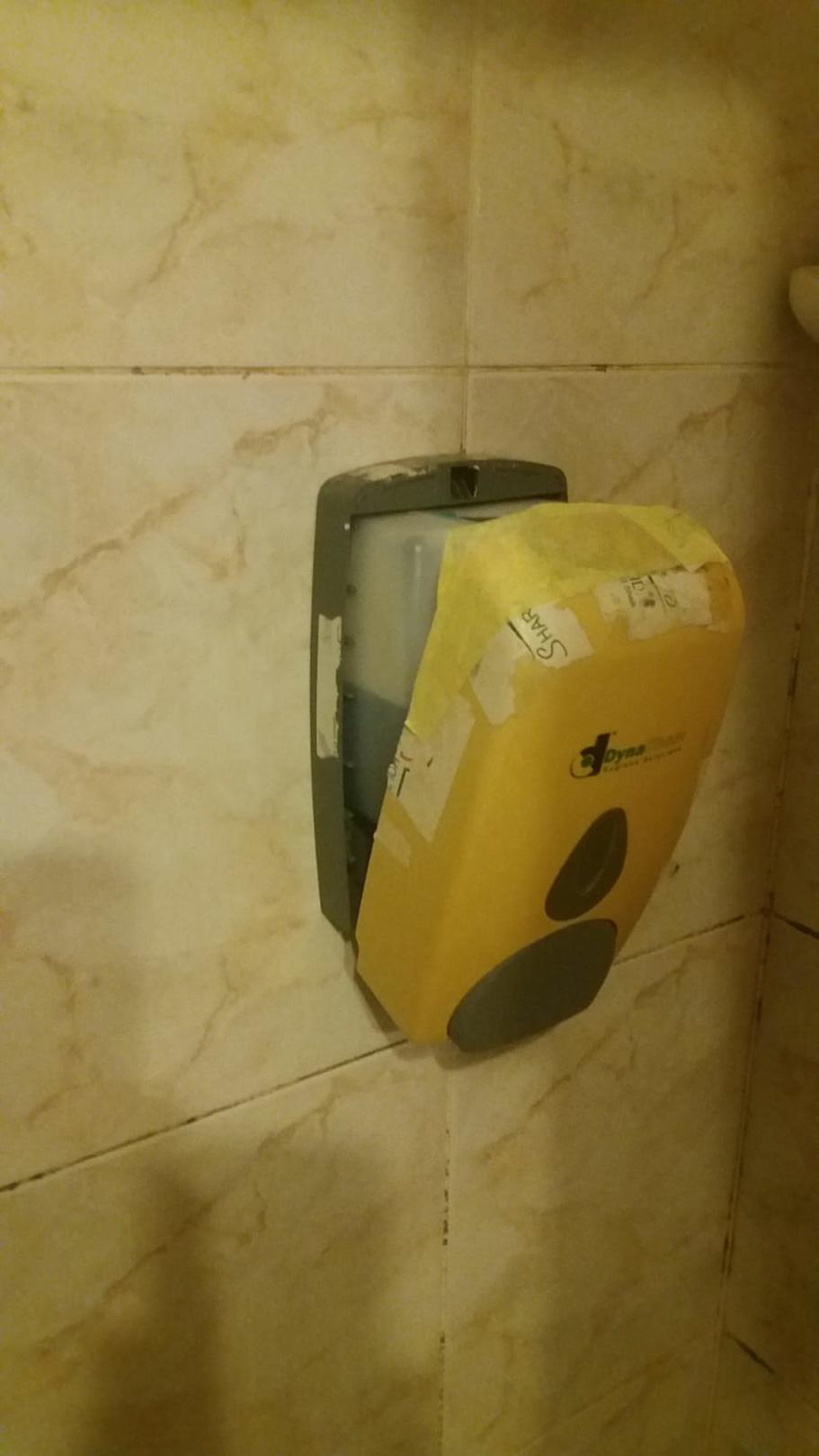 Seifenspender wurde versuchsweise mit Tape repariert.........