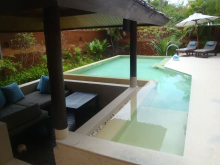 Pavillion und flache Stelle zum Liegen im Pool