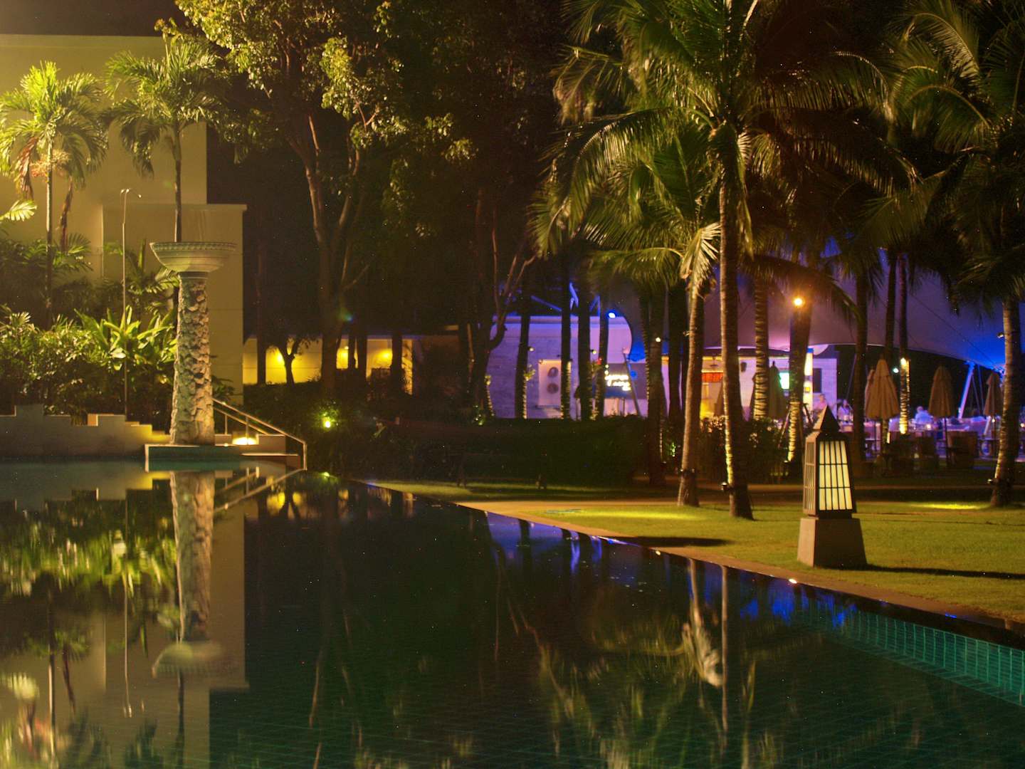 Im Hintergrund die Poolbar