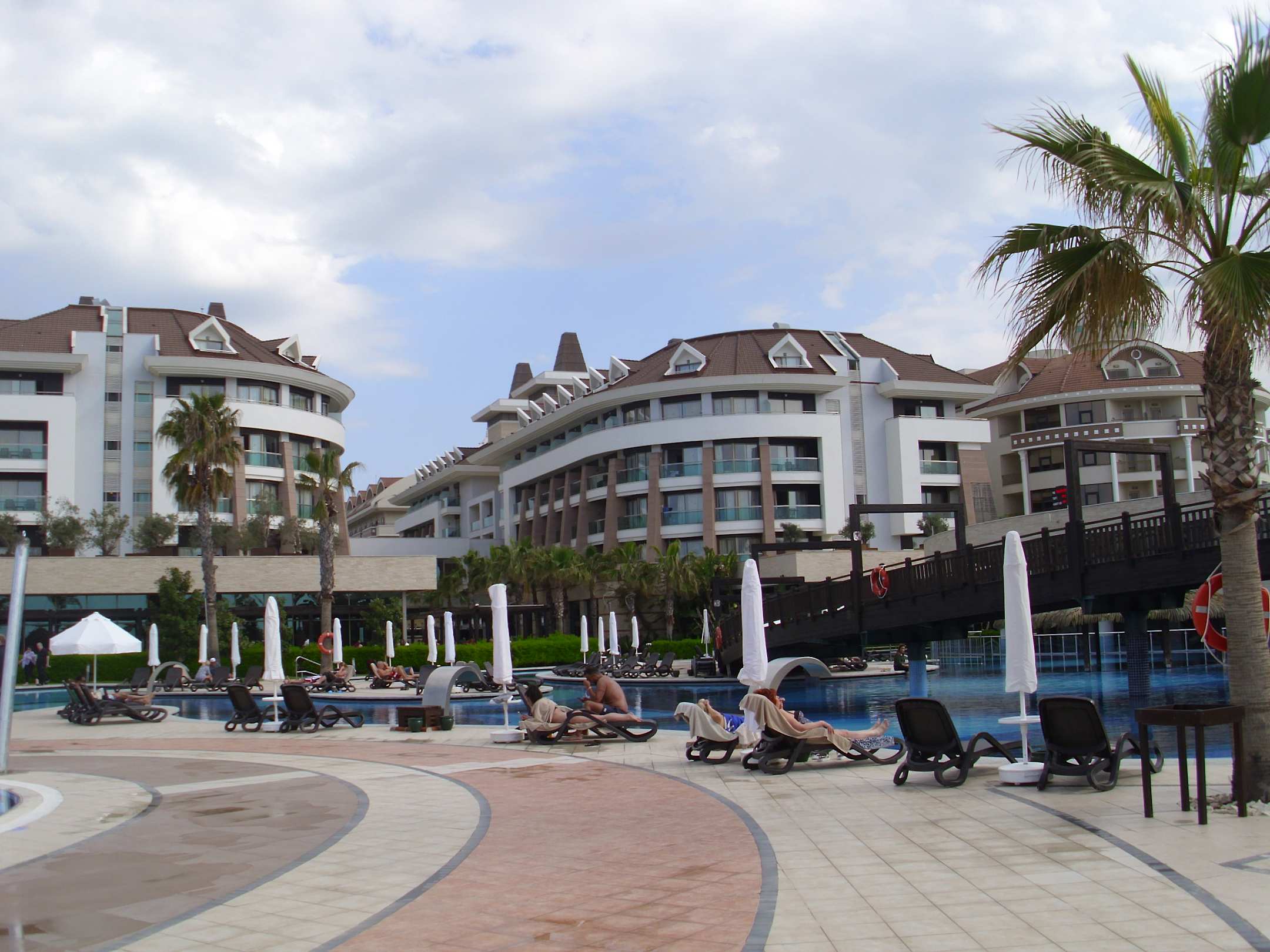 Blick von der Strandseite. Rechts außen liegt sehr nahe ein Teil des Nachbarhotels Kirman Belazur.