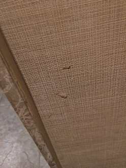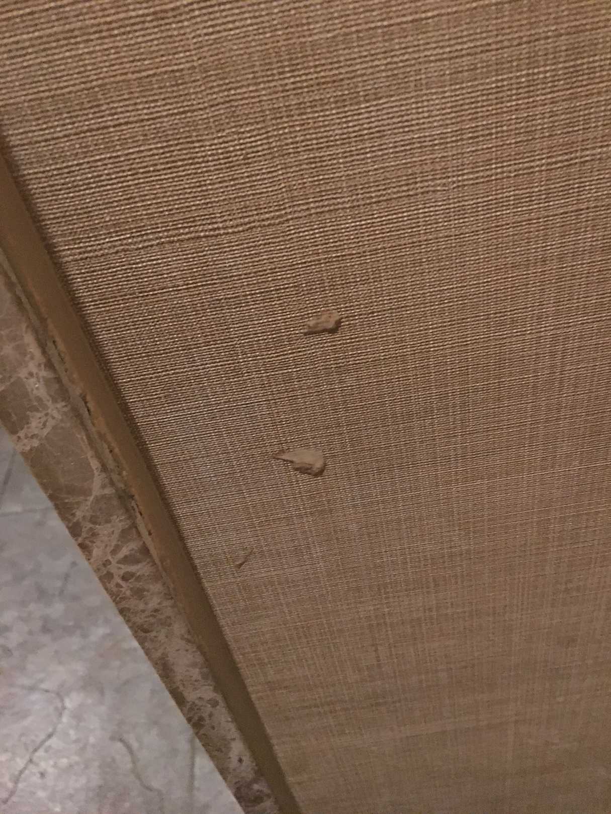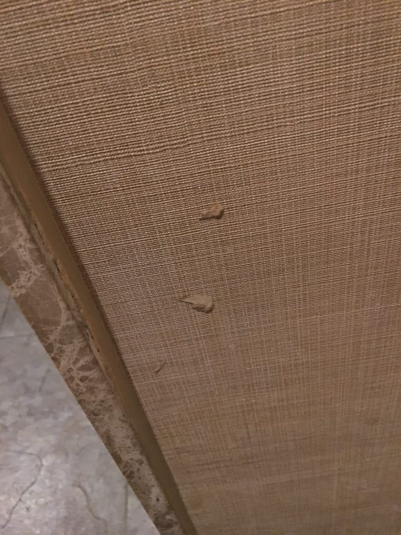 Mysteriöse Flecken an der Tapete in der Toilette, wir möchten gar nicht wissen, was es war..