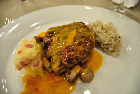 Steak mit Reis und Kartoffel