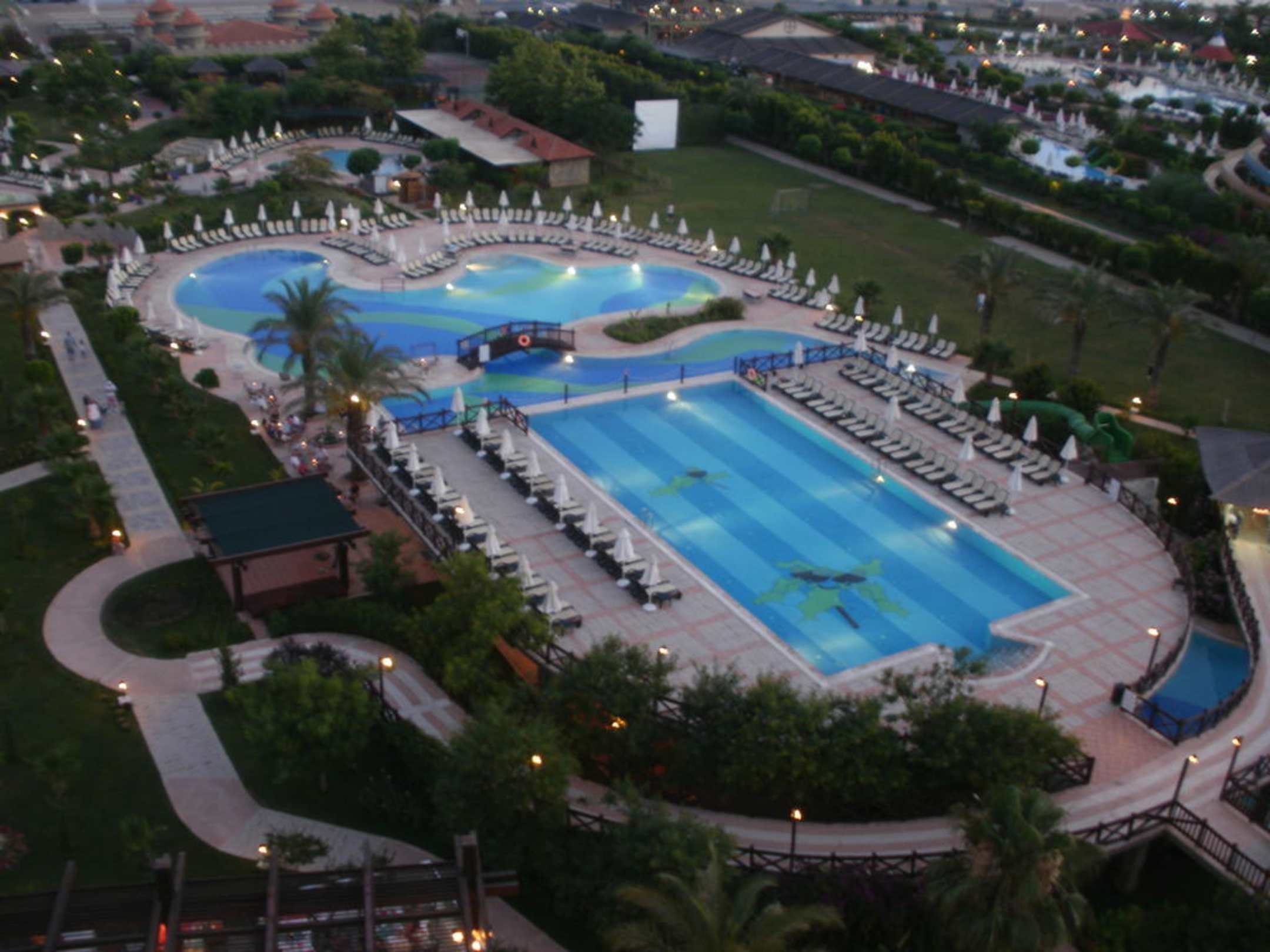 Blick vom Balkon auf Poolanlage