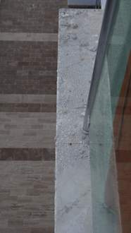 Bauschutt auf dem Marmorrand des Balkon