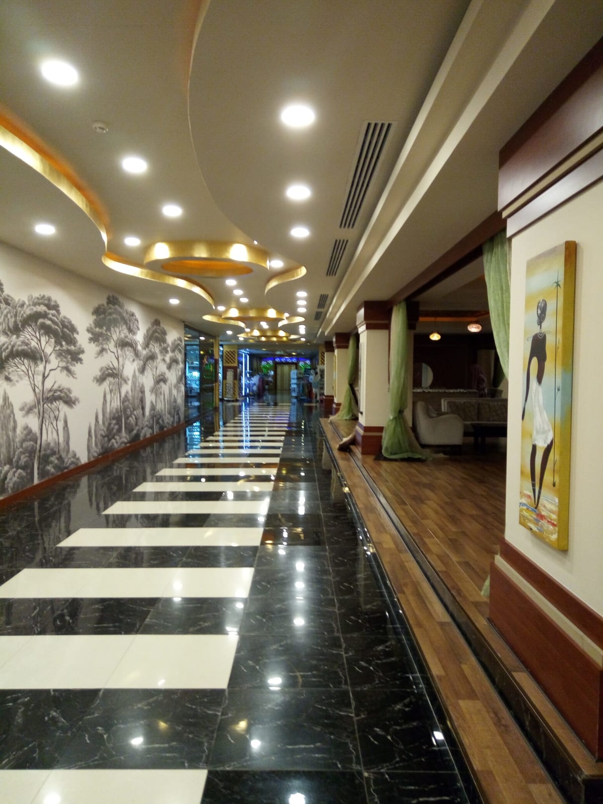 Saubere glänzende Böden. Richtung Speiseraum
