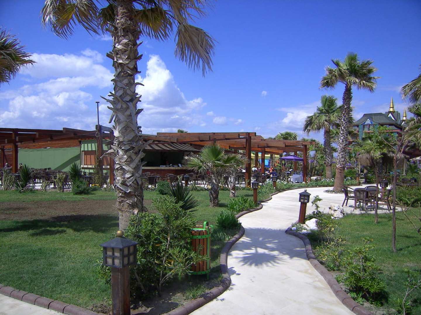 Der Gehweg durch die Gartenanlage entlang der Strandbar und dem tollen Pool.