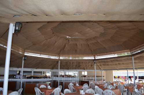 Bauruine mit Jutesäcke abghängt