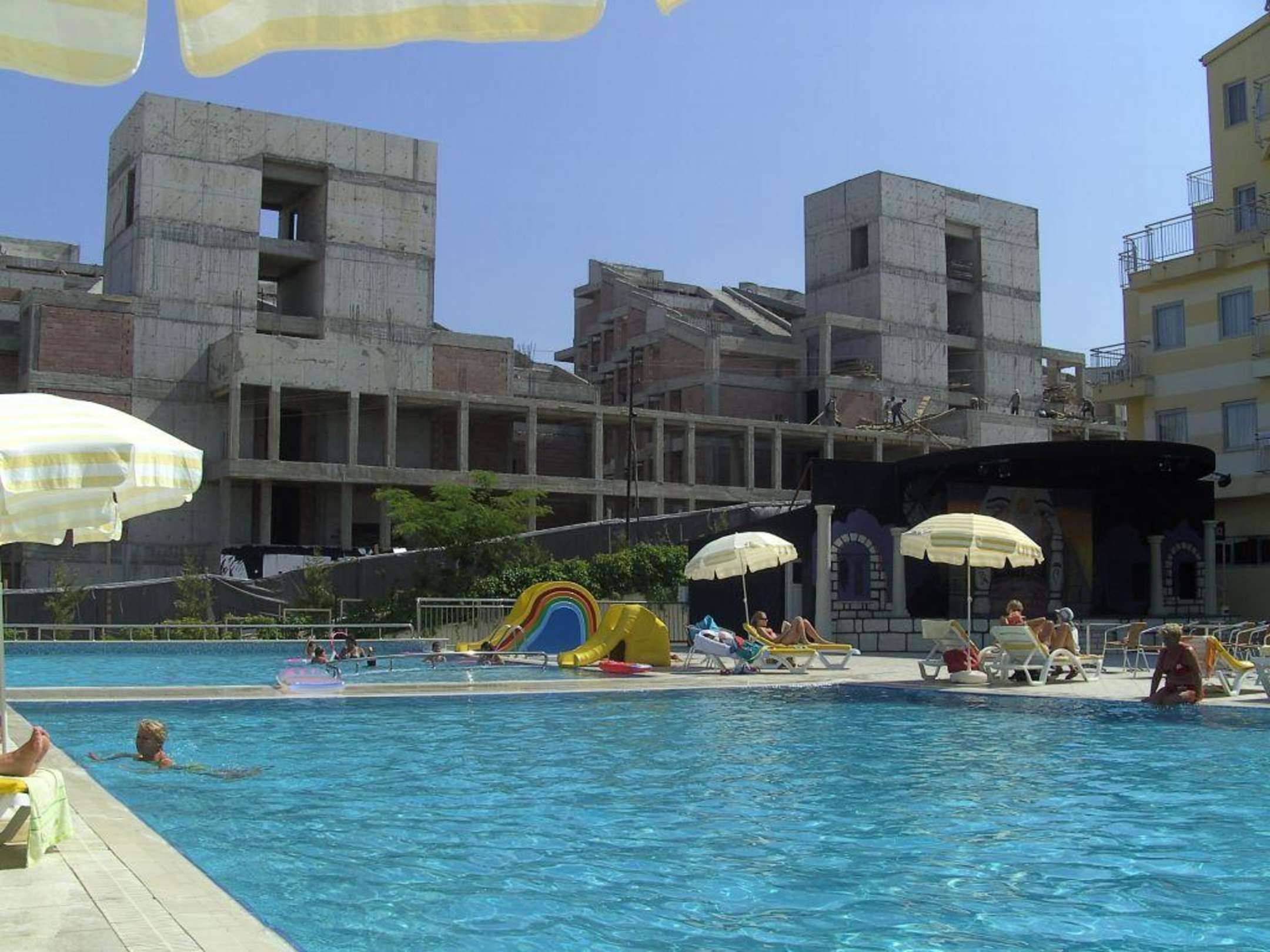 Hotelbaustelle Richtung StrandDer Rohbau ist fertig. Im Inneren wurde weitergearbeitet. Aber der Rasenmäher war lauter