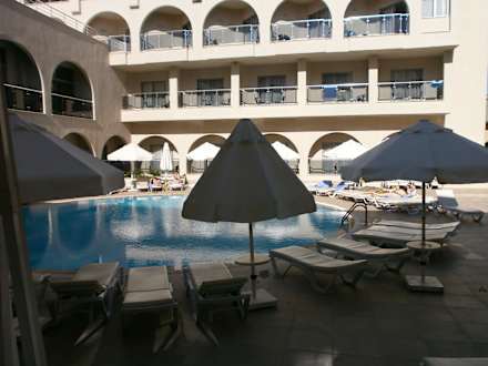 Blick aus dem Zimmer zum kleinen Pool
