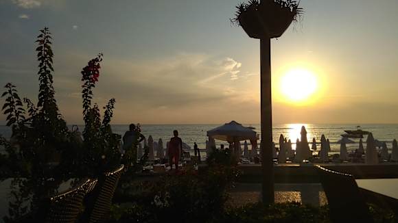 auf der Terrasse sitzend !