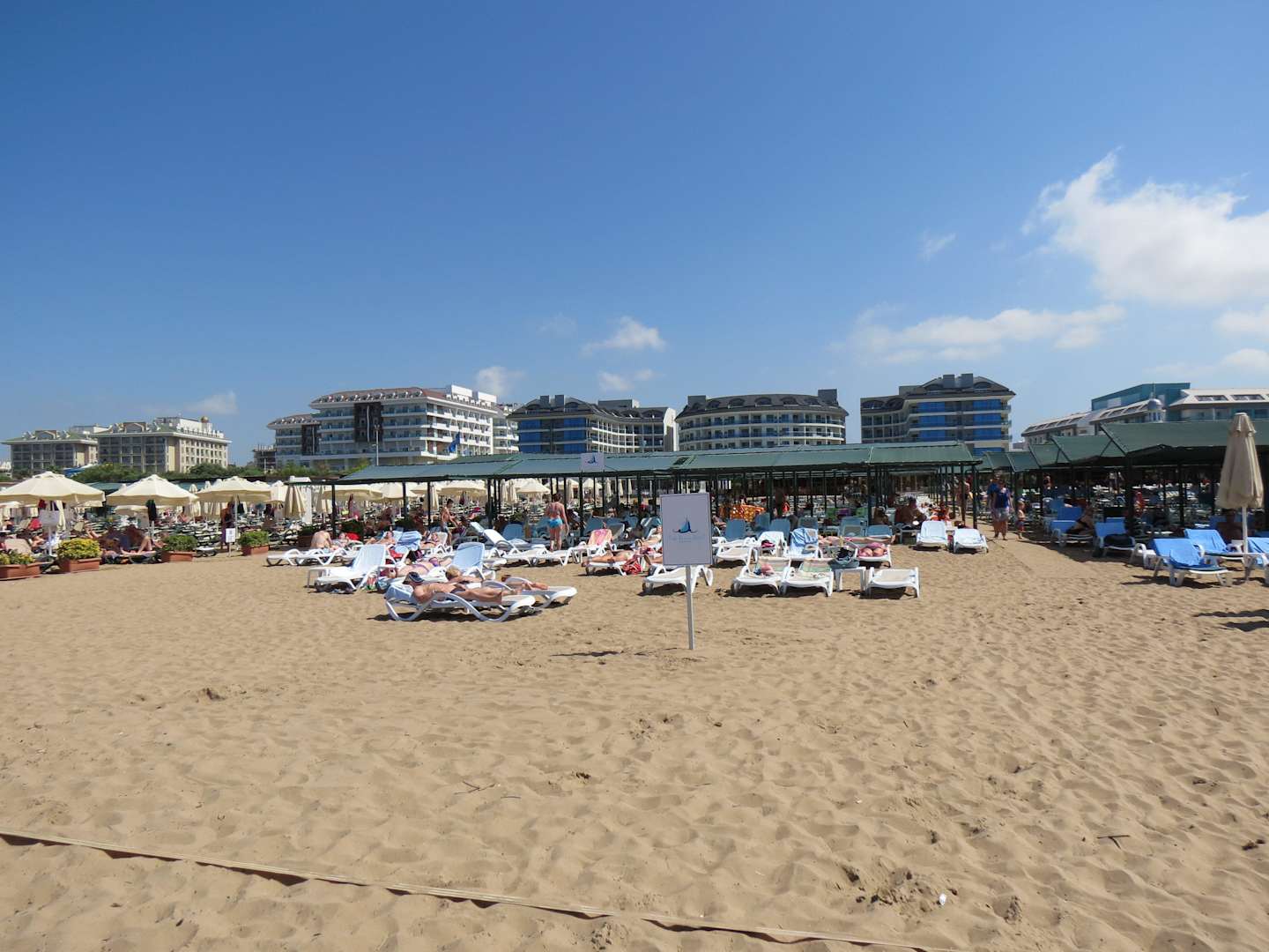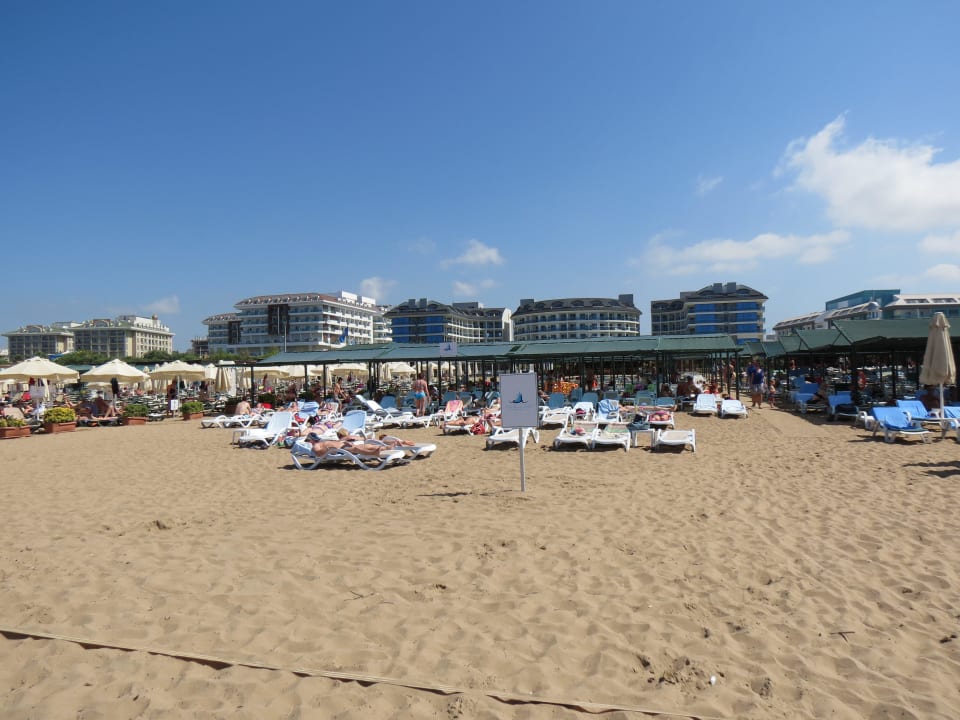Blick vom Meer zu den Liegen