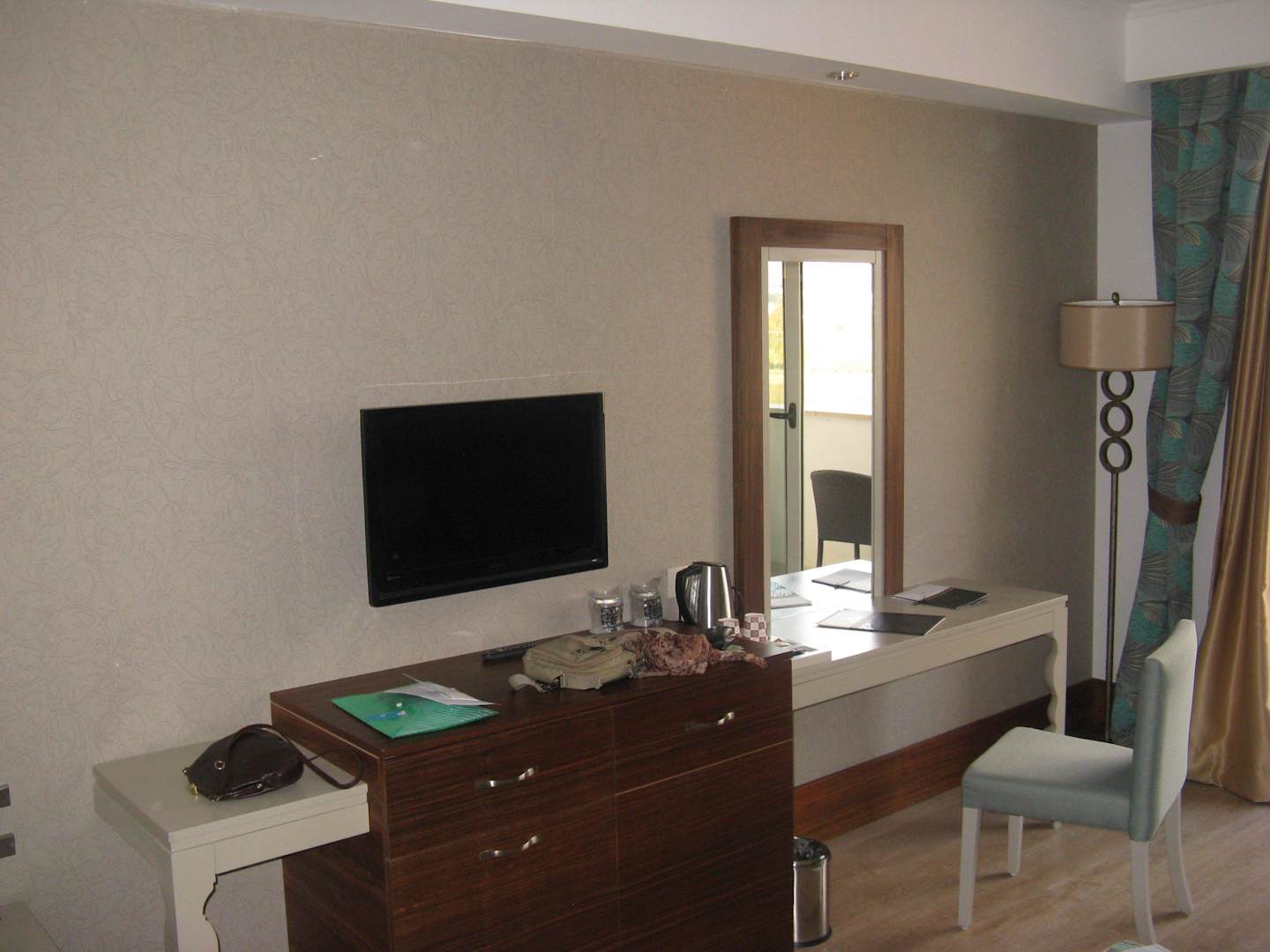 Schreibtisch mit TV Flachbildschirm