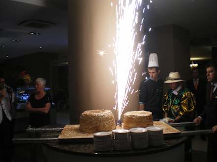 Eisbomben werden hereingetragen