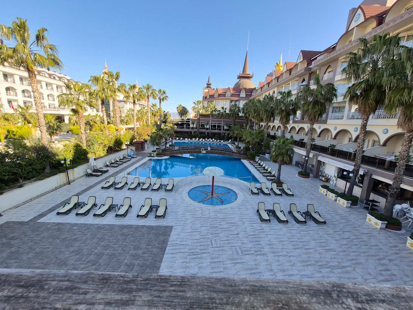 Blick auf den Hauptpool von der Sonnen Terasse